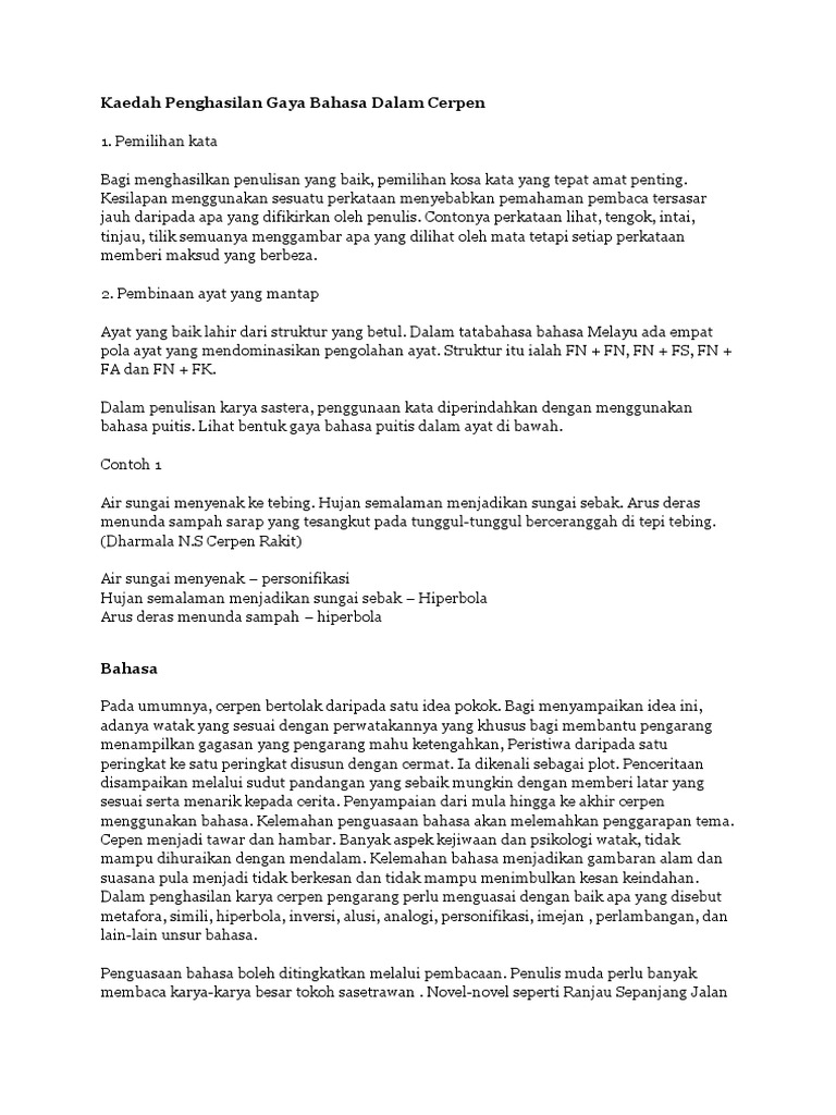 Hal ini karena pada umumnya dianggap sudah mengetahui kelanjutannya dan maksud yang. Pemilihan kata Bagi menghasilkan penulisan yang baik pemilihan kosa kata yang tepat amat penting. Kaedah Penghasilan Gaya Bahasa Dalam Cerpen 1.